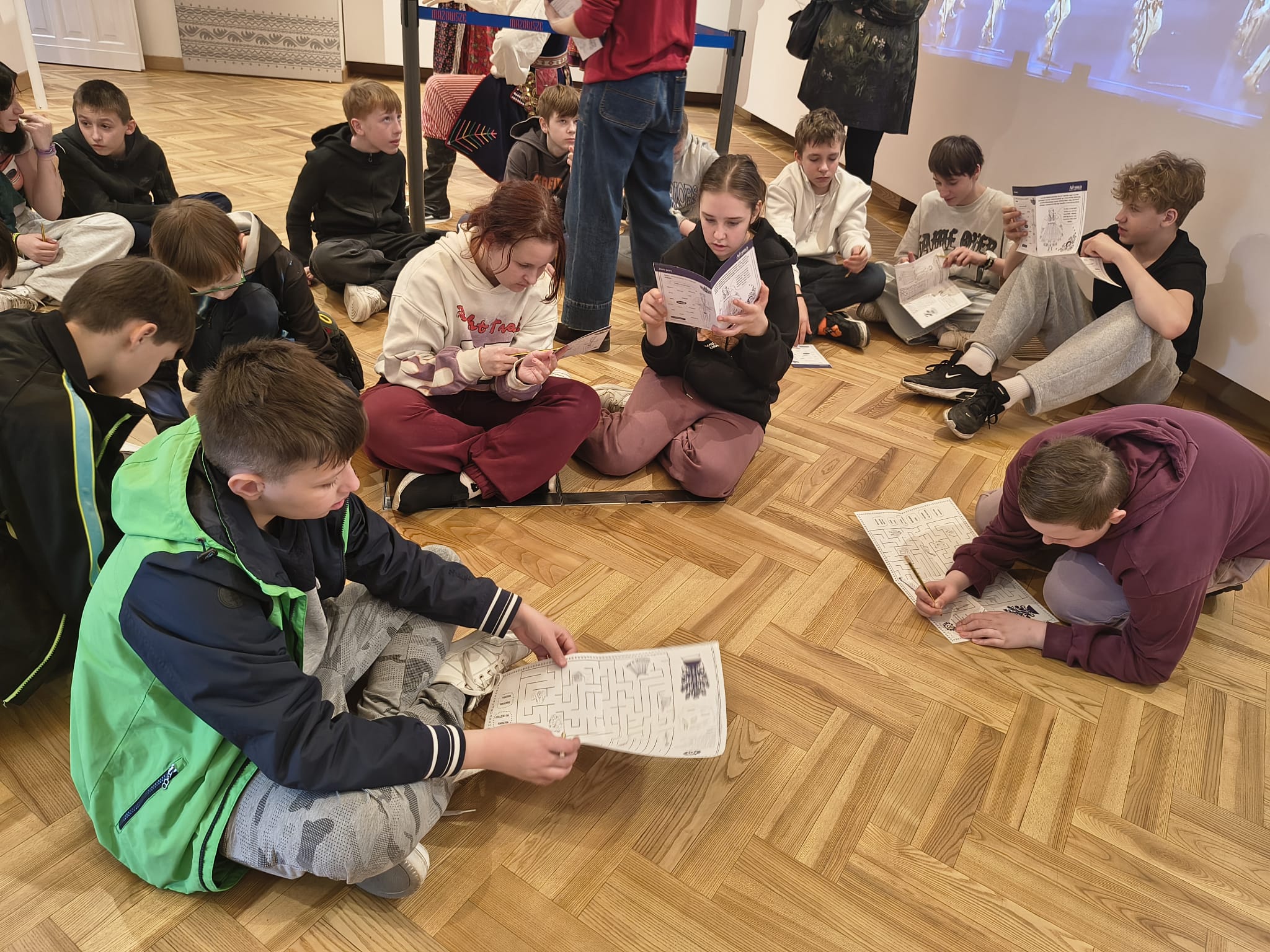 palmy na Niedzielę Palmową rozpoczynającą Wielki Tydzień, które zabrali z sobą. Podczas pobytu w Centrum Folkloru wychowankowie MOS Zielonka zwiedzili także sale poświęcone tradycjom i kulturze poszczególnych regionów Polski m.in. kurpiowskiej, kujawskiej czy łowickiej. Uczniowie zobaczyli, jak ciężki jest strój